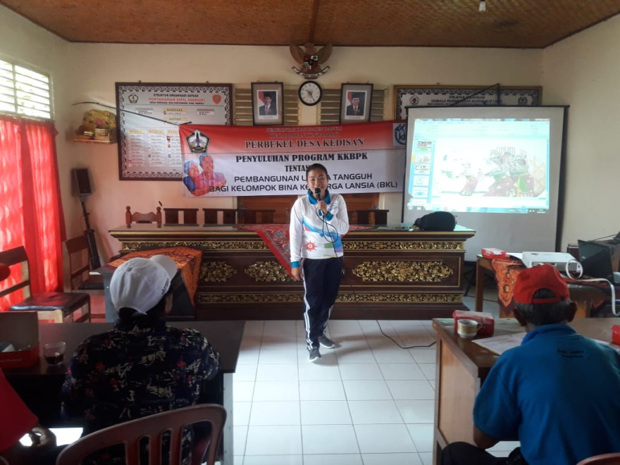 Jumat, 26 April 2019 di Ruang Pertemuan Perbekel Kedisan dilaksanakan Penyuluhan dari Ni Made Budi En, tentang pembangunan lansia tangguh bagi kelompok Bina Keluarga Lansia.