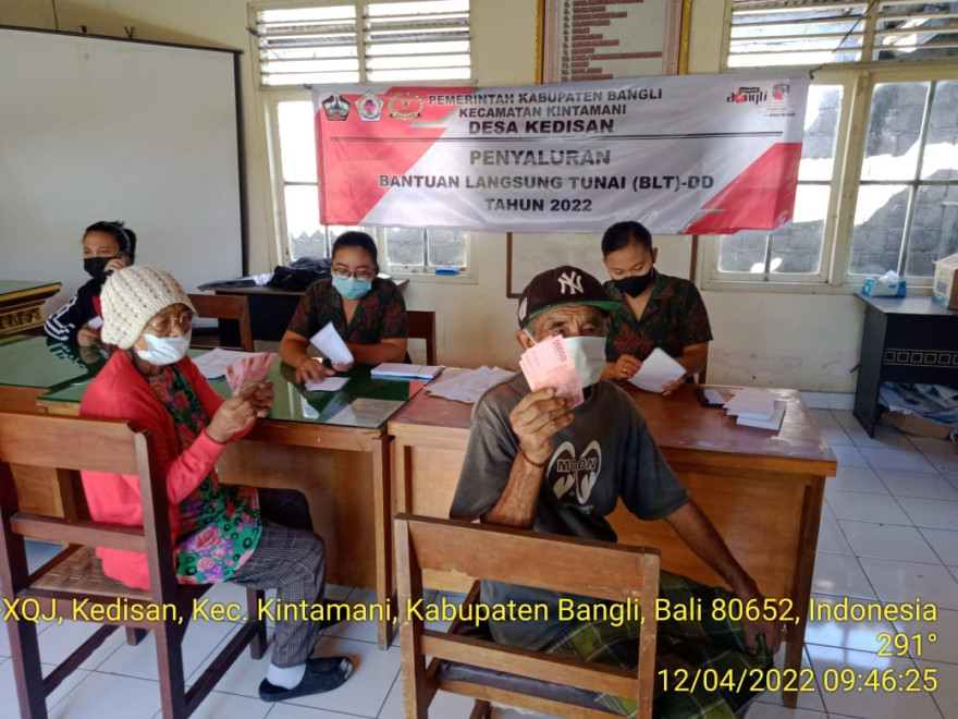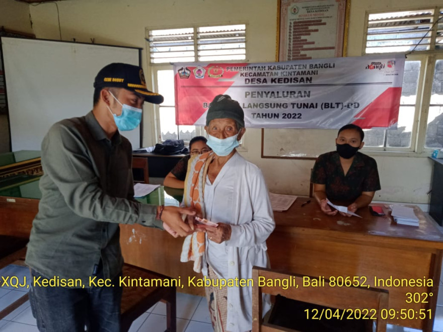 Selasa, 12 April 2022 Penyaluran BLT-DD Kedisan Bulan April 2022 kepada 75 KPM.