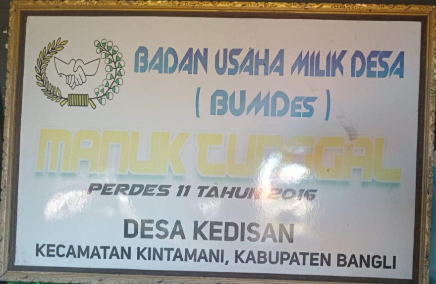 BUMDes Manuk Tunggal Desa Kedisan memiliki 2 unit kerja yaitu perdagangan dan simpan pinjam yang di Ketui oleh ibu "Ni Wayan Sudiartini" dan Bendahara "Ni Ketut Winarti".